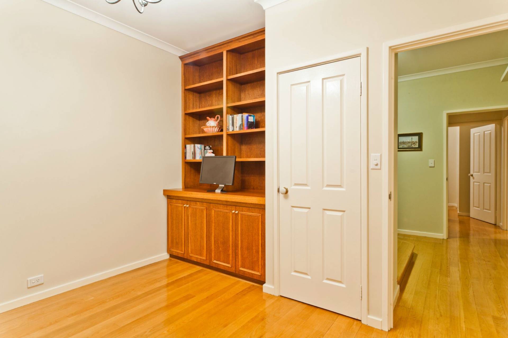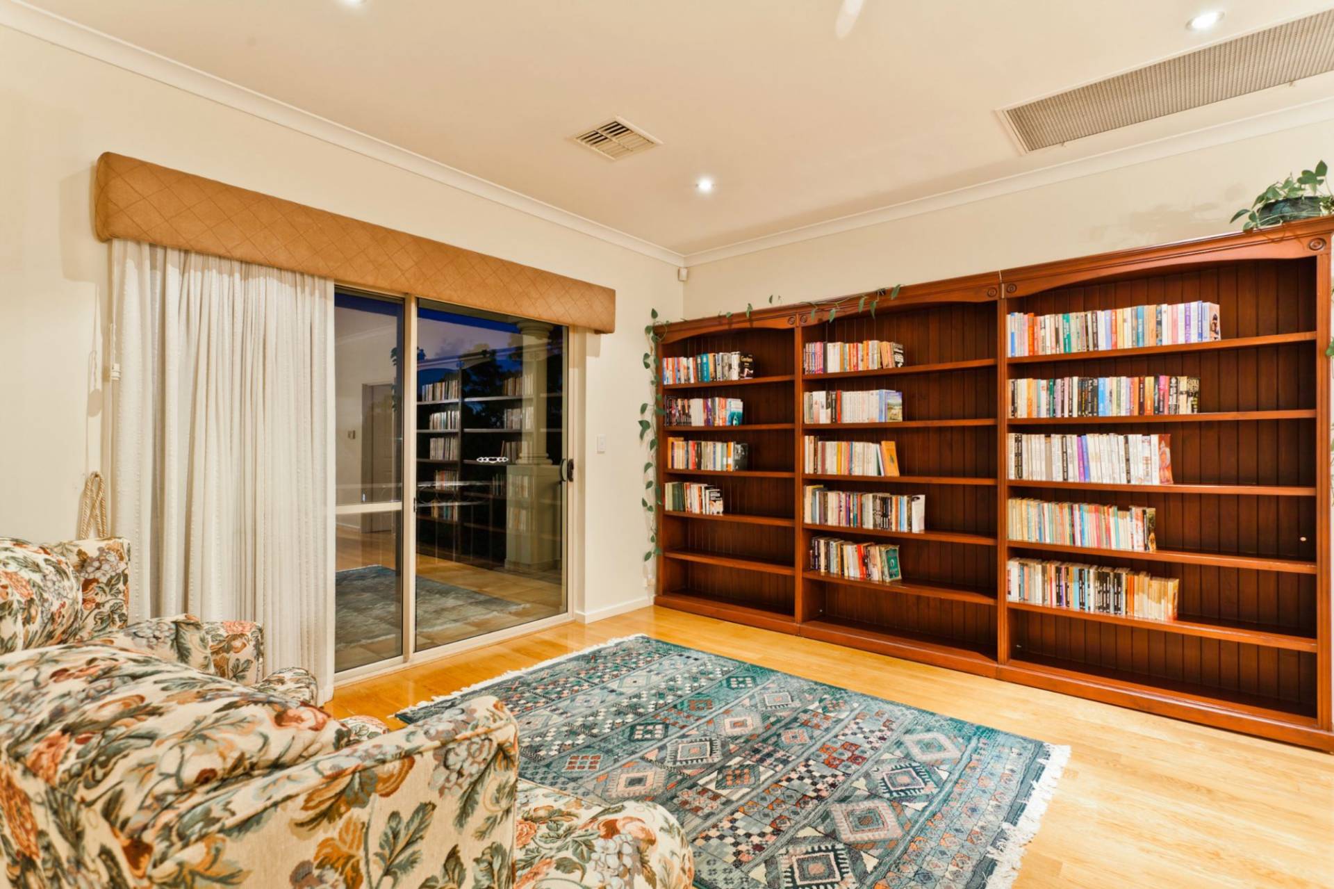 • Study with custom made fitted Jarrah library shelving