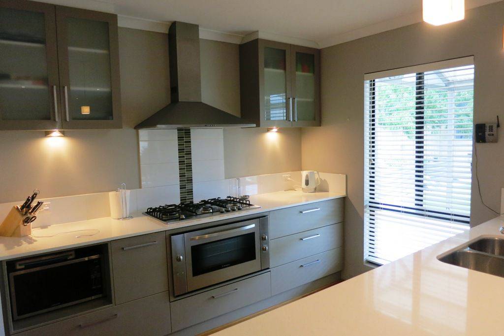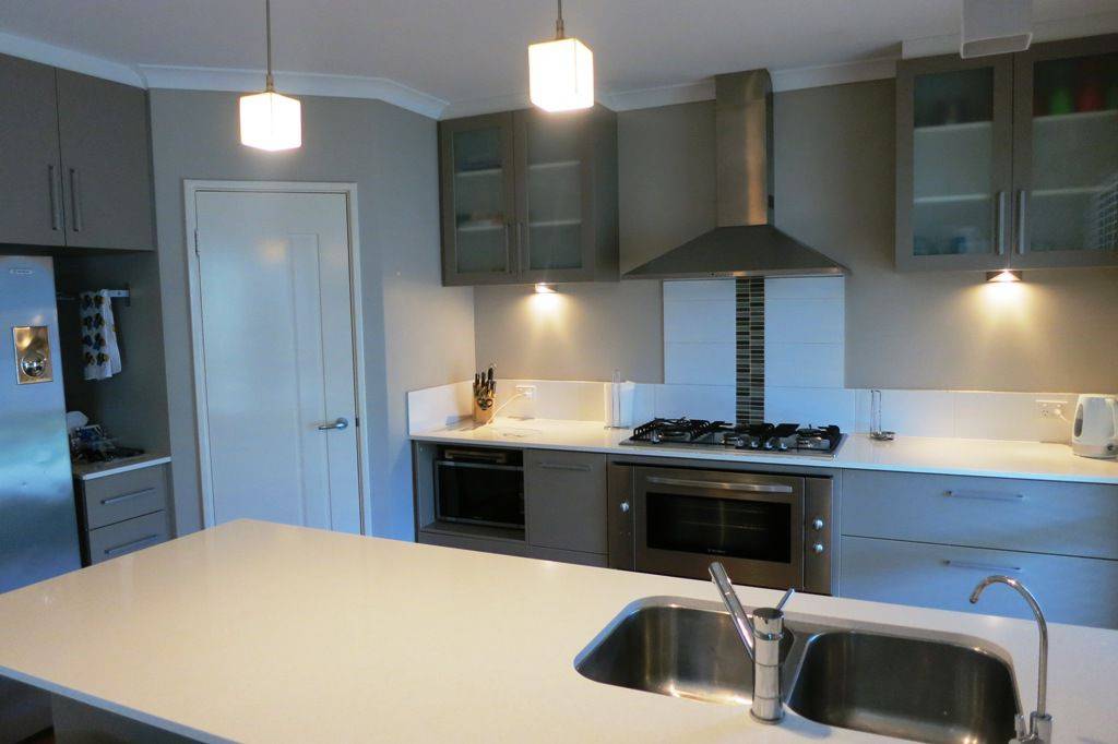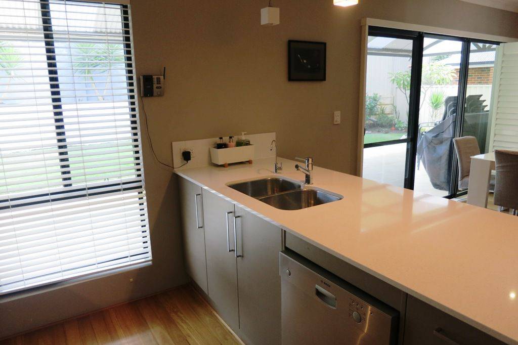 - Open plan kitchen/living with dishwasher and split system air conditioner.