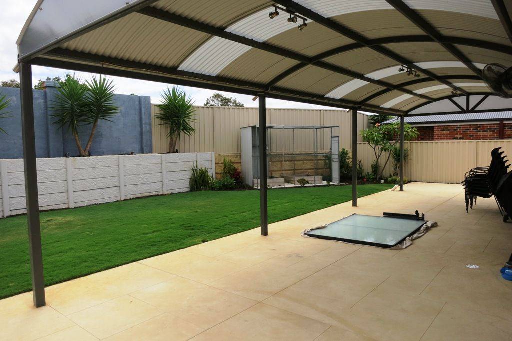 - Large pergola and grassed area to the back.