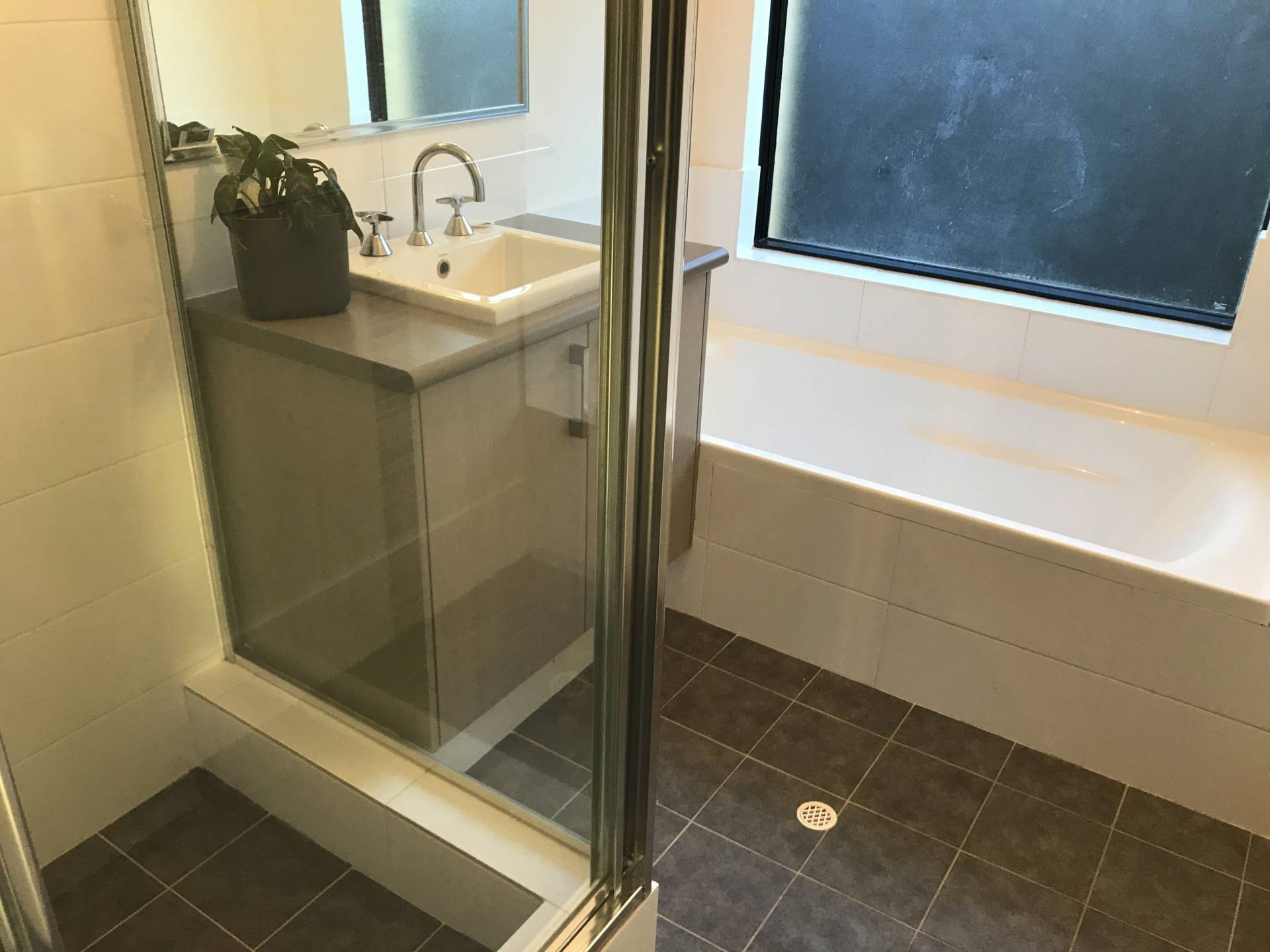 * Modern family bathroom with shower, bath and vanity