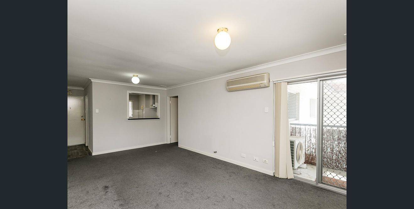 - Large living/dining area which leads to a small balcony and split system air conditioner.