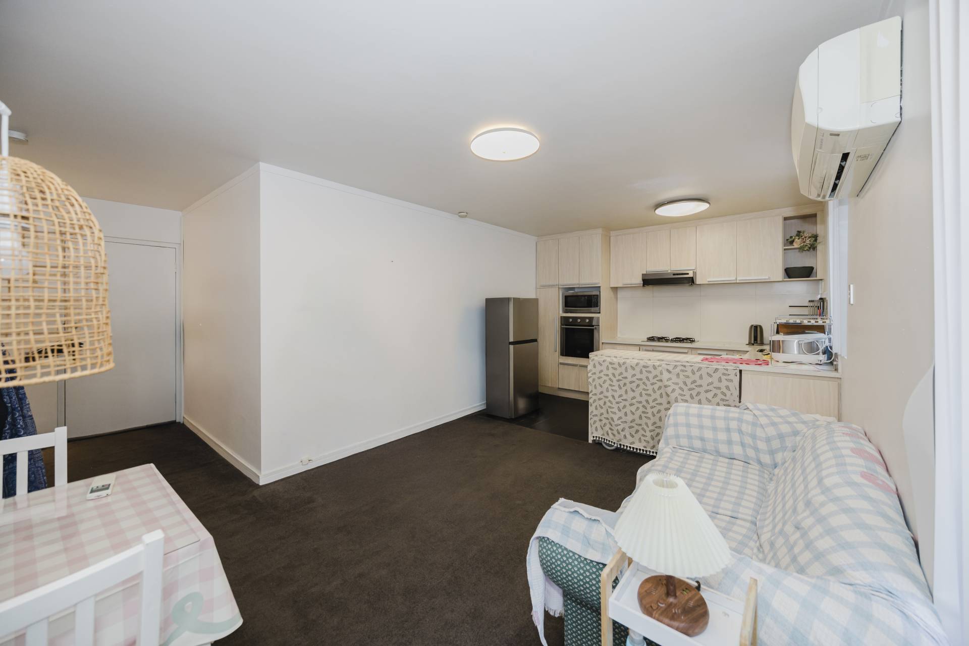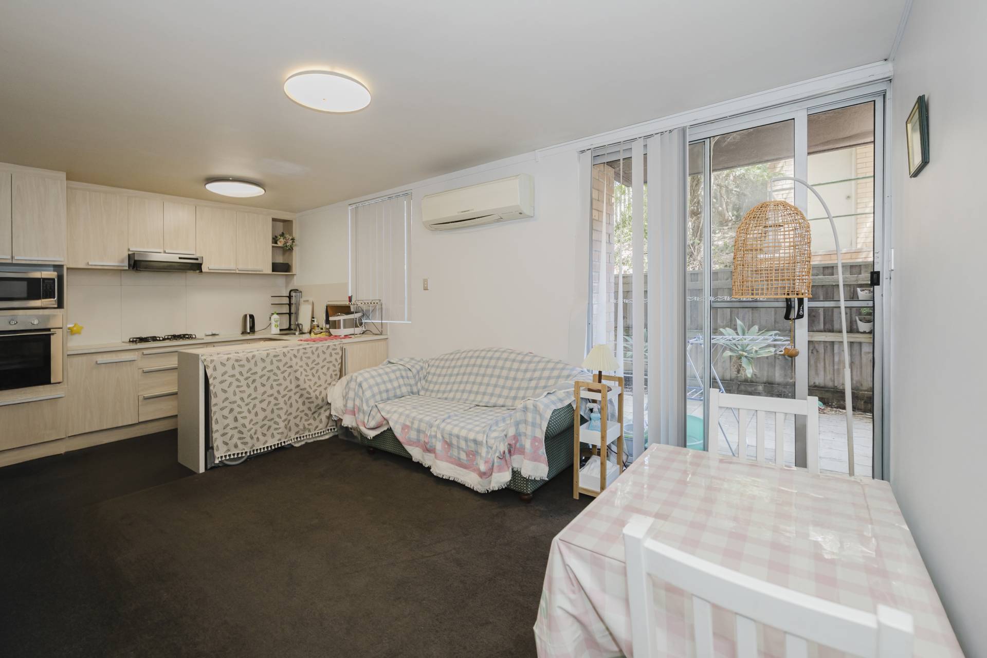 Open-plan living and dining with split-system air conditioning