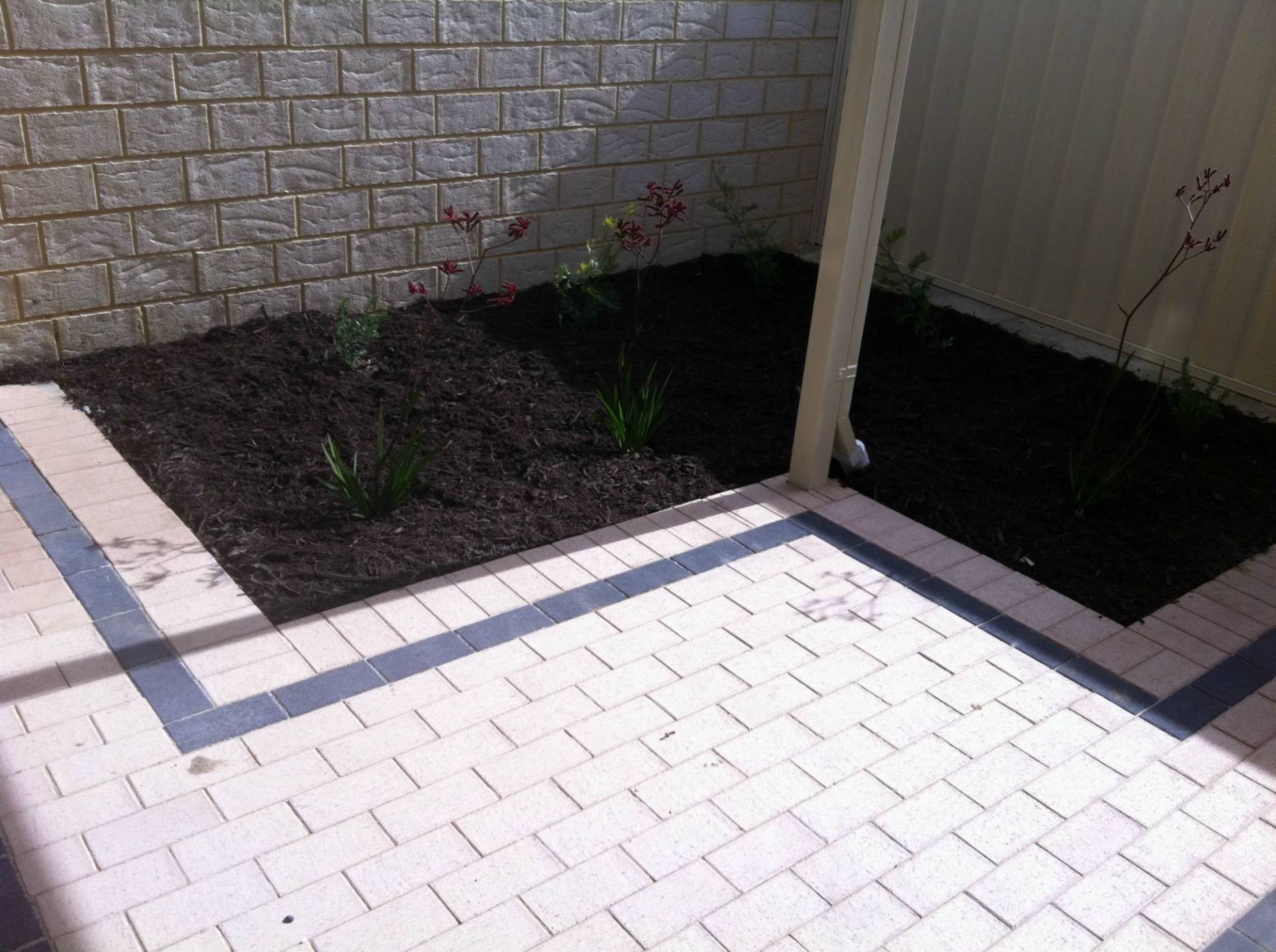 Small alfresco area, with low maintenance gardens.